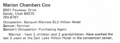 The summer of 1954 Marian and I were married. I spent three years in Hawaii as a cryptographer in security service. After discharge in 1957 I worked around Utah country until winter quarter 1959, then I attended BYU for a couple of years (no graduation). I started work at Hercules in 1961 and that lasted until 1969. Worked at Litton Industries for a few years, then Telemation Inc. Beehive Electronics. Evans and Sutherland and many other small companies to numerous to mention. Retired from DYNO Nobel, the largest manufacture of commercial explosives in the US in Sept 1999.
